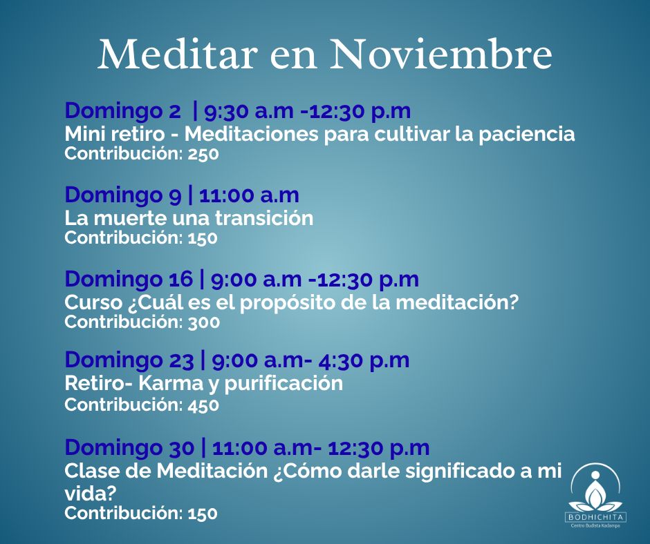El Centro de Budismo Kadampa Bodhichita surgió de la visión e intención puras del venerable Gueshe Kelsang Gyatso Rimpoché, fundador de la Nueva Tradición Kadampa, para que todos puedan aprender a ser felices y solucionar sus problemas desde el interior. Para ello ofrecemos clases semanales, cursos y retiros, con meditaciones guiadas y enseñanzas de Budismo moderno.